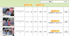 購入する写真が決まったら、≪カートの中をを見る≫をクリックしてください。 カートに入っている写真が一覧表示されますので、写真データのダウンロード購入かプリント注文かご指定いただき、プリント注文の場合、プリントサイズと枚数をご指定ください。 注文内容が確定後、≪計算して再表示≫をクリックして商品代金を確認してください。 確認後、≪ご注文手続へ≫をクリックして、お届け先やお支払方法などの入力画面に移動します。 |